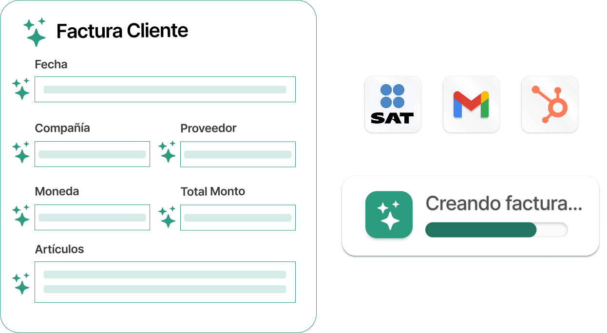 Nuestro agente de IA automatiza la generación y timbrado de facturas, y mantiene tu CRM y ERP sincronizados para acelerar el ciclo de ingresos.