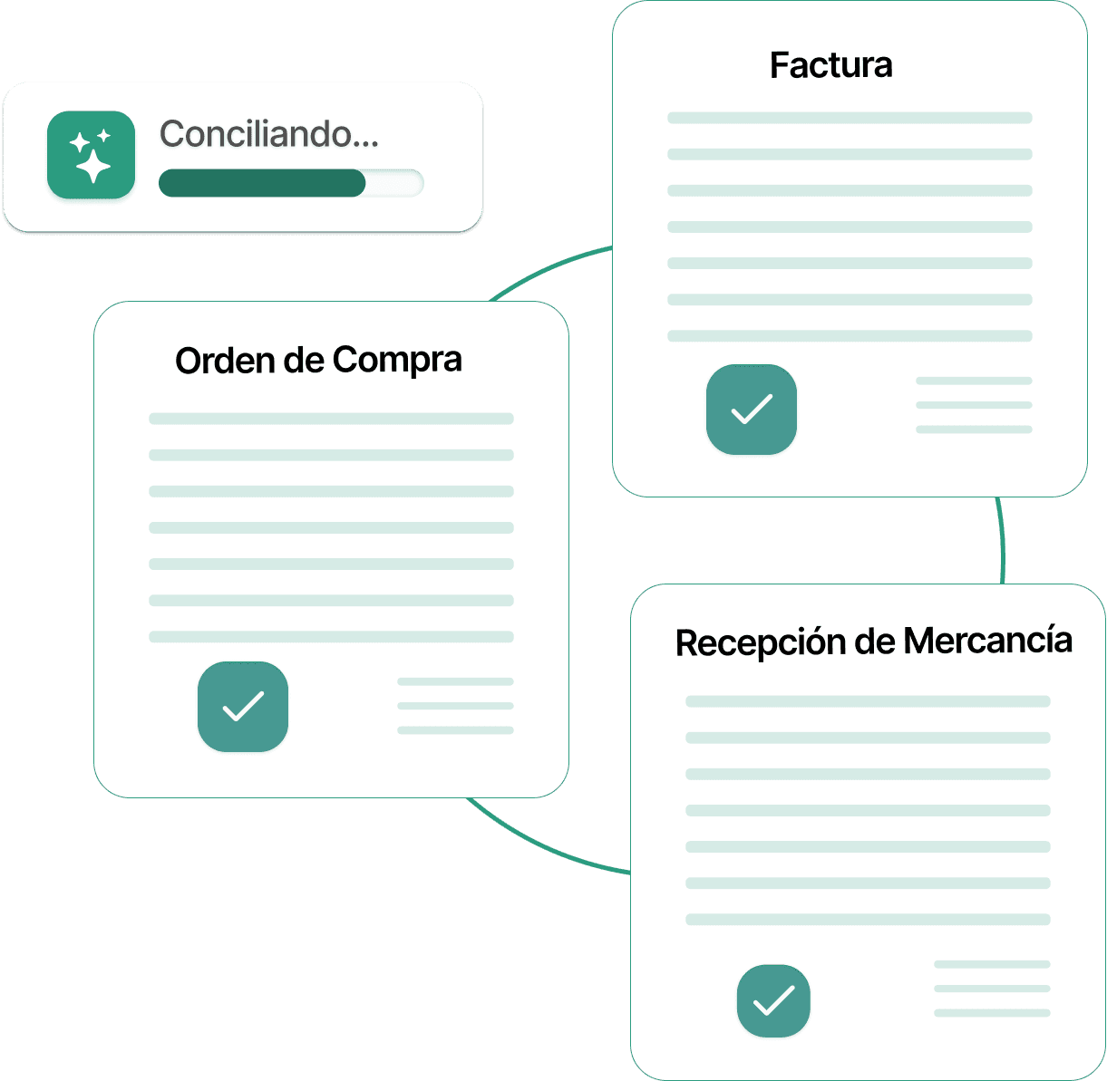 Valida automáticamente OC vs. recepción vs. factura para detectar desviaciones y resolver excepciones antes de contabilizar o pagar.